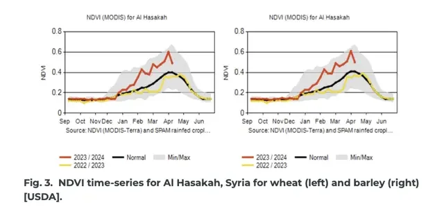 Small grain crops, such as wheat and barley, play a vital role in food security and economic stability in the Middle East. The major river systems Euphrates and Tigris that run through Iran, Iraq, and Syria provide fertile land that facilitates much of the agricultural industry in the area.